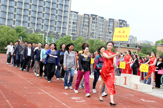 在“点燃梦想 迎接青奥”—— 民盟南京市委第一节趣味运动会上,六合总支来自离比赛场所距离最远的江北重地。当天,在六合励志中学进行了紧张的训练后,我们坐着大客车风尘仆仆赶来参赛。现在,运动员们正呼喊着“友谊第一、比赛第二”的口号,精神抖擞地走过主席台前。