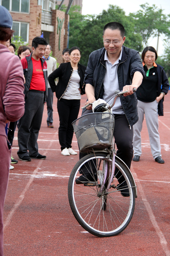 自行车慢骑,因为技术娴熟,神情就很悠闲。 那边,在体育馆内的老年项目比赛中,年近八旬的陈伯元在趣味保龄球比赛中获得了一等奖。 我们总支取得了总分第六名的好成绩。