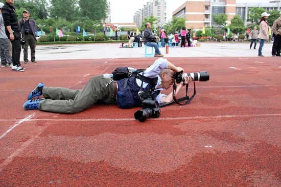 还有,六合盟员赵龙是名气很响的摄影家,今天他担任运动会的首席摄影,看看他的姿势,就知道他是多么尽职、多么投入了。
