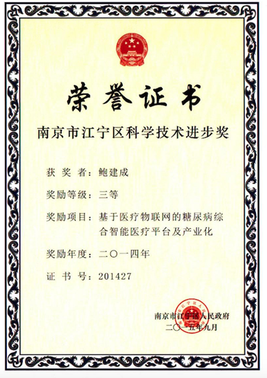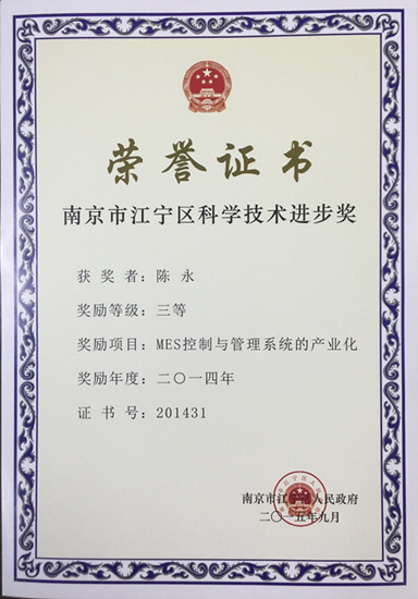 南京民盟盟员陈永的“MES控制与管理系统的产业化”、鲍建成“基于医疗物联网的糖尿病综合智能医疗平台及产业化”等2项成果获得江宁区科学技术进步三等奖。