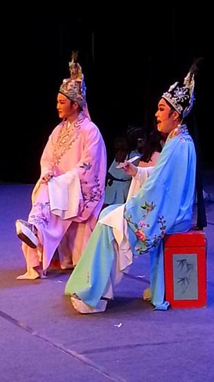 2016年7月27日,南京市越剧团为泰州人民送去了一台经典越剧《梁山伯与祝英台》。 天气炎热,该剧导演陈菊芳、午台监督周忆雯、服装武文玉、化妆张云峰、道具何啟忠提前赴泰州参加装台工作,奋战在一线,大家在各自的岗位上各负其责,战高温,出色地完成了演出前的准备工作。盟员陈伟萍、徐素英、以及三位新盟员钟旭东、杨文丁、吴安妮也参加了这次演出活动,陈伟萍在剧中饰祝英台。 演出圆满成功,大家认真地完成了由省演艺集团主办的公益演出活动。演出结束一线人员还要参加折台工作,持续奋战确实辛苦,连夜返回到家已是凌晨将近2点钟,但大家都毫无怨言。作为一名文艺工作者,为人民服务是我们应尽的责任,酷暑难挡送文化,我们辛苦并快乐着。 越剧团 陈菊芳 |