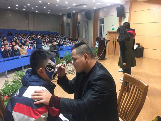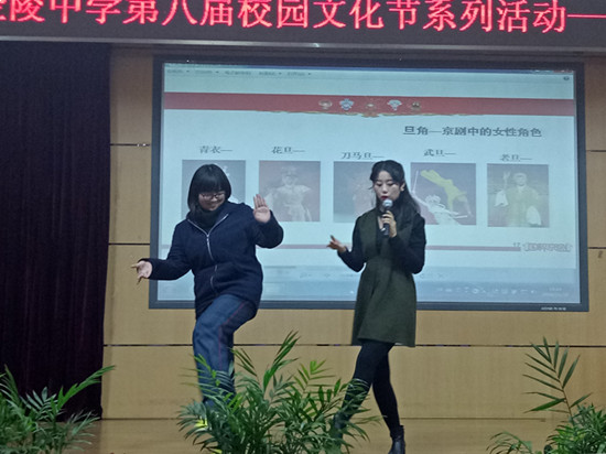 11月24日下午,民盟文化总支组织南京市京剧团支部的京剧名家和优秀青年演员走进南京市金陵中学,以高雅艺术进校园的方式将国粹京剧艺术带到学生身边,给金陵中学高一年级五个班的学生们上了一堂精彩纷呈的京剧艺术普及公开课。  这也是民盟文化总支组织的“高雅艺术进校园”系列活动之一,旨在弘扬中国传统文化,展现传统艺术魅力,为当代青年学子营造一个近距离接触戏剧艺术的机会。市剧协主席陶琪和民盟文化总支主委史进和金陵中学的数百名师生们一起度过了一个难忘的下午时光。  为帮助青年学生更好地了解戏剧艺术,欣赏戏剧艺术,本次活动在采取了课堂讲座与现场展示相结合的方式基础上,更融合了参与性和互动性。民盟盟员、市京剧团优秀青年演员林爱娜作为主讲人,给孩子们上了一堂生动的京剧普及课程,国家一级演员郭贺军为孩子们上演了精彩的变脸绝艺、盟员张训菘现场演唱了《智取威虎山》选段、盟员王莹表演了载歌载舞的《天女散花》,京剧团支部主委张晓茜忙前忙后,为演员们做好化妆、服装等配合工作。  金陵中学的同学们在听课的互动中欢声笑语、积极参与,在现场展演环节中掌声连连、叫好不断。当盟员张训菘现场为一名同学勾出窦尔敦的脸谱时,现场一片惊呼,讲座也进入高潮,同学们纷纷围住勾着脸谱的同学,与其合影留念。  活动结束后,该校教务主任苏华老师高度评价了此次活动,她称该活动寓教于乐,让学生们自主、自愿地融入其中,潜移默化地受到了戏剧艺术地熏陶。通过这样的活动,戏剧艺术一定能够在他们的心中留下浓墨重彩的一笔,中国传统文化的精彩神韵也一定会让他们在陶醉于此的过程中点燃他们的爱国之情!苏老师表示,希望可以与南京市戏剧家协会建立长期的合作,多多引入这样的艺术普及活动。文化总支主委、南京市戏剧家协会副主席史进也表示,在今后的工作中将加大对青年人群中的戏剧普及工作力度,让戏剧艺术真正成为文化自信的一扇主要窗口。  民盟文化总支 |