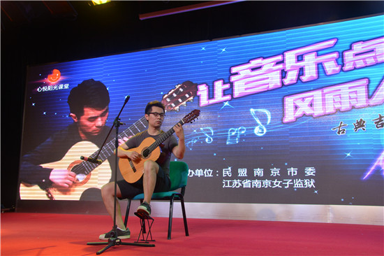 王艺津毕业于享誉世界的古典音乐学府--德国汉诺威音乐学院,获音乐教育和音乐演奏双硕士学位,现任南京艺术学院古典吉他专业教师。他曾在国内重大比赛中多次获奖,他的音乐充满幻想,感情表达真挚自然,演奏风格细腻优雅又不失活力,深受听众喜爱和好评。 赏析课上,王艺津从古典吉他的起源、弹奏技巧、音色表现力、与民谣吉他的区别等基本概念开始讲起,同时,他的两位高徒刘川乐、包玉虎现场穿插着为观众表演了俄罗斯风格的华尔兹曲、西班牙古典吉他乐曲、十九世纪的浪漫曲等各种类型的独奏吉他经典名曲和重奏曲《月光》,王老师也亲自演奏了两首西班牙民歌《阿美莉亚的遗言》和《圣母之子》,并对每首曲目的内容、风格及诞生背景进行介绍与分享;刘川乐、包玉虎两位嘉宾还表演了民谣吉他弹唱《白杨》和《斑马》,吉他音乐时而高亢有力,时而如泣如诉,时而热情奔放,时而激昂奋进,把在场人员带进了一个奇妙的音乐世界,他们被音乐所陶醉,也为老师们的精湛技艺所折服,掌声与欢笑声不断。  在南京女监的授课现场,王老师还特别设置了一个互动环节,现场邀请几名服刑人员上台和嘉宾一起演唱了吉他弹唱《童年》,熟悉的歌声,让现场的观众在歌声中净化心灵,感受生活的美好,现场气氛活跃,赏析课达到了高潮。课后,服刑人员张慧激动地与记者说:“这次音乐赏析课使我感受到了古典吉他音乐的魅力,欣赏音乐的同时使我的心灵得到了愉悦,让我感觉到生活的美好,我要好好改造,争取早日刑满出去。”服刑人员陈丽表示:“我也没有想到能在监狱听到这么高雅的音乐,优美的音乐把我带回了我的童年,带回了我人生最幸福的时刻。也使我放松了身心,以更好的状态投入到今后的改造中去。  赏析课结束后,南京女子监狱教育改造中心负责人薛建昌不表示,让高雅音乐赏析会走进高墙内,这是监狱系统创新教改活动的有益尝试,通过这个活动让服刑人员在欣赏音乐的同时,也拓宽了眼界,涵养了人生,丰富了服刑生活,收获了开心快乐和希望,进一步激励她们热爱生活,热爱音乐,追求新生梦想,加速改造步伐,重新走向社会。 据悉,南京民盟多年来积极发扬“黄丝带”进监帮教的优良传统,南京民盟文化专委会委员徐忠主动加强与江宁监狱、南京女监的沟通联系,南京民盟文化、法律、经济专委会多次开展送法进监、法律咨询、联合帮教等多种形式的志愿公益活动。为此,江宁监狱在 2018年5月成立了民盟盟员、南京电视台融媒体新闻中心徐忠命名的徐忠工作室。本次送艺术进监活动,系双方以徐忠工作室为平台开展的“首秀”活动,江宁监狱低密度戒备分监狱副监狱长陈建东表示,感谢南京民盟在监狱服刑人员改造工作中的助力前行,此次举办的高雅音乐赏析会不仅帮助服刑人员拓宽眼界、抚慰情绪、净化心灵,更激发他们的正能量,增添新动力,更好地走好改造回归路。陈建东表示,希望通过音乐等艺术改造实践,培养服刑人员自信自尊、理性平和心态,积极拓展文化改造的教化功能。 文化专委会 徐忠