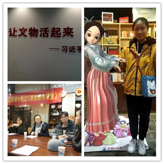 第一堂课——1月25日,“双创服务课堂”携手大学生创客走进文创示范企业凤凰华服小当家武定门城墙基地,本次活动主题为“认知社会,创业圆梦”,由南京民盟陶行知支部、南苑街道创客中心、松果商学院、凤凰华服小当家艺术创客、巾帼创客家、南京高职校子木电商名师工作室、南京知仁青年联合举办,陶行知支部负责社会服务工作的支委李燕老师带队进行现场课堂交互与实践指导。