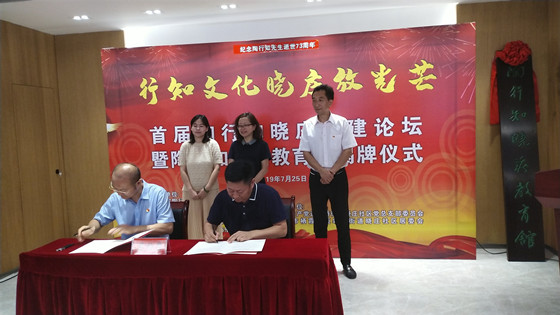 2019年7月25日,适逢陶行知先生逝世73周年纪念日,民盟南京市陶行知支部与迈皋桥街道晓庄社区等单位联合开展“行知日”活动,通过拜谒陶行知墓、参观陶行知纪念馆、签署协议结对共建、举办主题论坛等形式,共同缅怀陶行知先生,弘扬陶行知精神。 民盟南京市委秘书长魏淑玲、中共南京市栖霞区委统战部副部长孙璐璐等出席活动,民盟南京市陶行知支部主委陈雷远、副主委龚瑾、张蕾及部分盟员,与迈皋桥街道晓庄社区党委、中国陶研会讲师团、陶行知纪念馆、金陵科技学院人文学院、行知公益同盟成员单位、晓庄小学和吉祥庵小学等学校、燕子矶街道、晓庄社区等单位代表共同参加了活动。 活动日的早上,大家冒着酷暑纷纷于8点半前到达陶行知纪念馆前,由参观陶行知纪念馆起始,开启了“行知日”的行程:在陶行知纪念馆老馆里,聆听首任馆长汤翠英老师的讲解;在陶行知纪念馆新馆的建设现场,倾听现任馆长朱晓春介绍新馆建设情况;在陶行知墓前,由民盟南京市陶行知支部主委代表大家献上鲜花。在晓庄社区的办公楼里,签署共建协议,为“陶行知晓庄教育馆”揭牌、举办主题为“行知文化晓庄放光芒”的首届陶行知晓庄共建论坛、通过了首届陶行知晓庄共建论坛共建倡议。 活动中,民盟南京市委秘书长魏淑玲、栖霞区委统战部副部长孙璐璐和在陶行知纪念馆首任馆长、现任馆长共同为“陶行知晓庄教育馆”揭牌,民盟南京市陶行知支部主委陈雷远代表支部与晓庄社区党委签署了共建协议,民盟南京市委老盟员张成和、民盟南京市陶行知支部副主委龚瑾,在论坛上做主题发言。龚瑾副主委在发言中对结对共建如何共出成效提出了设想,老盟员张成和谈到了受陶行知先生的关爱和精神指引,自己一生的受益。与会嘉宾还留言表达了对晓庄未来营造的设想展望。 陶行知支部 吴淑芳 |