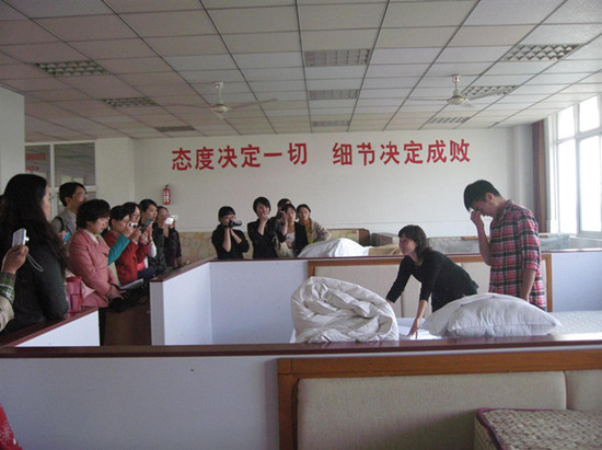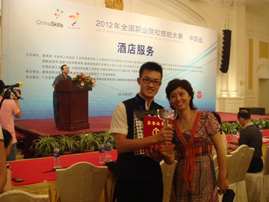 《中式铺床》技能竞赛是2012年全国中职技能竞赛新增加的项目,就需要有一定专业技能的教师敢于站出接受挑战。民盟盟员、南京旅游营养中等专业学校高级教师耿芹4月中旬接收任务,与学生在为期两个多月训练中,先后获得南京市竞赛冠军、江苏省金牌第二。学生因此获得保送本科的名额。她也先后获得相应的市级、省级优秀指导教师荣誉称号。最终于2012年6月在广州勇挫来自全国35个代表团的76个选手,以89.3的高分荣居榜首,勇夺客房服务中式铺床项目金牌第一名,为我省及我市争添了一枚宝贵的金牌。 .jpg)