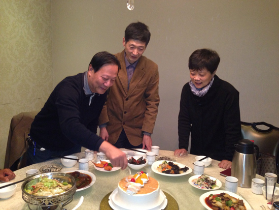 秦淮综合支部一直保持着一个优良传统:给支部老同志过整生日。而今年随着10月中旬新主委的任命,在老同志们的倡议下,为了更好体现集体的温暖,支部又有了新举措:那就是除了逢整数庆生,还有逢5过小庆哦。 11月中旬就迎来了第一位小庆的寿星——吴其昌,而他的生日恰逢越来越热的“双十一节”。为了能成功举办这次支部第一个小庆生日聚会,老龄委员王伯诚细致周到、费心筹划,同时得到了贾主委的大力支持,在朱海燕的协助下,聚会于11日正式拉开了序幕: 下午3点钟开始就不断有老同志来到聚会地点,他们聚在一起很开心,总是有说不完的话:从健康、家庭、养老,到退休后的生活、出行无话不聊;同时老同志们还聊到了正在召开的十八届三中全会,讨论了《中共中央关于全面深化改革若干重大问题的决定》和公报,畅谈了自己的想法,就中国深化改革中的亮点热点问题提出自己的见解和建议,表现出了高度地参政议政热情。 新任主委贾芸丽撇开繁忙的公务,提着生日蛋糕亲自来到聚会地点给吴其昌过生日。她首先对寿星表达了祝贺,而后感慨地表示:老同志一直是支部的宝, 有着丰富的工作经验和阅历,对提高盟务工作水平和做“五有支部”都有着不可多得的意见和建议,并热切地希望老同志在保重身体的同时,为支部建设多多发挥余热。然后贾主委亲自点燃生日蜡烛、领唱了生日快乐歌,这时聚会达到了高潮;寿星则在老同志们的掌声中许下了心愿、切下了蛋糕,生日宴会正式开始…… 秦淮综合支部 朱海燕