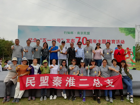 2018年正值中共中央发布“五一”口号70周年,4月21日民盟南京市委在牛首山组织了“行知杯.南京民盟纪念‘五一’口号发布70周年主题教育活动”,民盟金陵高职校第一支部五人现场参加了此次活动,参赛队员奋勇争先,与秦淮二总支盟员一举夺得一等奖。  此次主题教育活动把民盟发展历史贯穿于比赛进程中,突出了盟史知识的回顾和民盟组织在各个时期所发挥的积极作用,主题鲜明,组织有序,环环相扣,紧张激烈。 首先是现场定向越野赛,参赛的一共有14个支部,28组队伍,共140名队员,队员们拿到任务图,快速读图分工,然后根据图表,边看图边奔跑,还要注意山坡上打卡点,木桥角落的打卡点,拍照集合,寻找自由点,再拍照,再寻找自由点,一路冲刺,抢奔终点。接下来是知识答题环节,现场紧张极了,十名盟员静静地站在台上,大家屏住呼吸等待主持人宣读题目,第一题回答正确;第二题由赵卫军老师回答,他回答准确清晰,为全队拿到关键的25分,队员们都激动地跳了起来。最终秦淮二总支获得一等奖第二名的好成绩。 一次活动凝聚着许多人的付出,显现着民盟成员的齐心协力,更是大家责任意识的集中体现,学校两名盟员老师赵卫军和葛云虎曾在比赛前两次放弃休息时间参加区总支训练,还要默记知识题,高曙作为活动志愿者按照盟任务主动工作,张芝、王晓青、周美兰到现场当好拉拉队,帮助背题,做好后勤工作,还有支部的盟员们都及时打开了微信,时刻关注着盟活动,点赞、转发,给予了极大的精神鼓励。活动虽然结束,然而继承优良传统,充分发挥盟员参政议政、建言献策的作用,建设“五有”民盟组织的思想会长久地留在盟员心中。