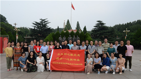 7月30日至8月5日,中共栖霞区委统战部和区委组织部以及区委党校联合举办了栖霞区第一期党外干部培训班,全区三十余名机关事业单位党外干部参加了培训,中共栖霞区委常委、统战部长尹军同志全程参与主持了培训工作。民盟栖霞区总支部叶宁、程飞、谢晓燕、杨东、朱杰、崇惠霞等6名区属机关事业单位党外干部参加了此次培训。此次培训采取集中学习和现场教学等方式,全体学员冒着酷暑高温参观了西柏坡中共七届二中全会旧址和李家坡中央统战部旧址,重温了新中国成立前夕,中共与各民主党派团结协作建立新中国的伟大历史征程。在雄安新区学员们在习近平同志曾经工作过的地方了解当地新农村建设成果,深刻领悟了习近平同志治国理政思想的起源和发展,更加坚定了走中国特色社会主义道路的信心和决心。   通过此次培训活动增进了党外干部与统战部之间的交流和感情,坚定了走中国特色社会主义道路的决心。作为民盟党外干部我们要继承和发扬民盟先辈与中共“肝胆相照、荣辱与共”的精神,自觉接受中国共产党的领导,为建设“强富美高新栖霞”谏务实之言,献可为之策。