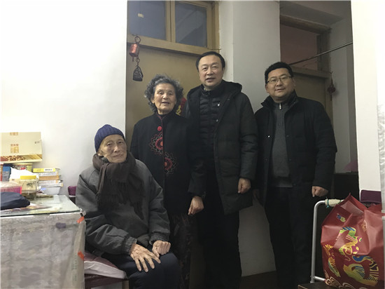 2019年1月30日上午,灰沉的天气挡不住春节快乐的步伐,寒冷的空气被民盟人敬老友爱的热忱所温暖。民盟栖霞总支叶宁主委带领民盟燕中支部丁雨南、叶晓凤等人专程探望慰问退休老盟员。  82岁的蒋金福老师还在医院中静养,对叶主委一行的探望高兴万分,感谢栖霞民盟转达的盟市委的关心。叶主委分享了栖霞民盟今年的各项活动,蒋老师为栖霞民盟现在取得的成绩开心,祝福栖霞民盟人继续努力取得更好的成绩。 1923年出生的糜宏杰老先生,于1951年12月加入民盟,是民盟燕中支部第一人。今年已97高龄的老先生平常都是待在卧室里的床上,但得知今天栖霞民盟人来看他,却执意要下床到客厅来见大家。 糜宏杰老先生对盟组织有着深厚的感情,充满着身为民盟人的自豪感。97岁的老人家,听力虽不太好,却多次说:我是燕中民盟第一人,尹树人和傅慰龄都是我介绍入盟的,那个时候学校还专门给了我们民盟一间办公室来开展活动,还特意写下办公室的地址“和平楼二楼”。 探访慰问活动不仅给老盟员们送去了温暖,也让年轻盟员很受教育。叶主委语重心长地与栖霞盟员们做了深入交流,形成了几点认识:1、平常要认真工作、注意保重身体,健康长寿是更好地工作与生活的本钱;2、要多关心老盟员,这是我们栖霞民盟人的宝贵精神财富;3、要通过多种渠道和活动,让老盟员了解我们栖霞民盟现在的发展和成绩。燕中民盟支部也将继续发扬优良传统、锐意进取,深入开展组织工作,为南京民盟“五有组织”添光增彩! 民盟燕中支部