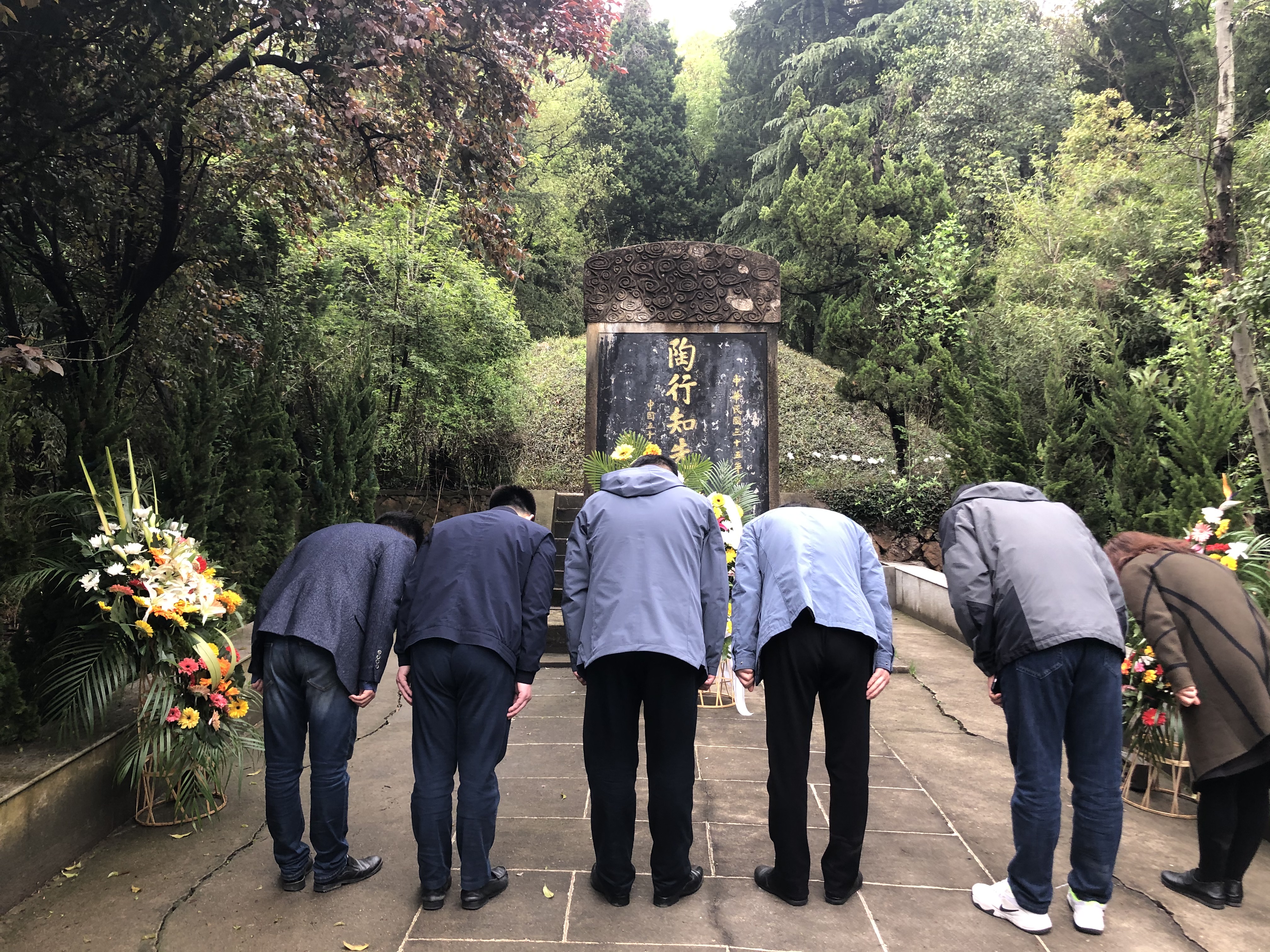 又是一年清明时,天空湛蓝,清风徐徐,4月2日下午,燕子矶中学党总支和民盟燕中支部部分成员,前往晓庄陶行知先生墓,缅怀先贤,寄托哀思。 “爱满天下”四字在苍松翠柏的衬托下格外醒目,面对陶先生的墓碑,大家心情激动,思绪万千,诉不尽对先生的无限深情,道不完对先贤无尽哀思。民盟燕中支部主委丁雨南,及党总支委员刘胜义在墓碑敬献花篮,全体成员三鞠躬,随后绕墓一周。今年恰逢陶先生诞辰130周年,陶先生是伟大的人民教育家、民主革命斗士、中国民主同盟早期领导人之一、南京民盟创始人,是我们民盟人永远追思与学习的榜样,陶先生一生积极投身中国革命和教育事业,大力倡导普及教育、全面教育、创造教育、终身教育及平民教育,不断探索中国现代教育的发展道路。作为教育人,我们要学习他热爱祖国、“人民第一”、“教育为公”的高尚品德,学习他“爱满天下”、“甘当骆驼”的奉献精神。 我校党总支和民盟支部每年在清明期间祭扫陶墓已成为传统,通过此项传统不仅让我们重温陶行知先生的谆谆教诲,更是将宣扬社会主义核心价值观融入到平时的教育工作中,不忘初心,践行使命,始终前行! 民盟燕中支部 马荣荣 |