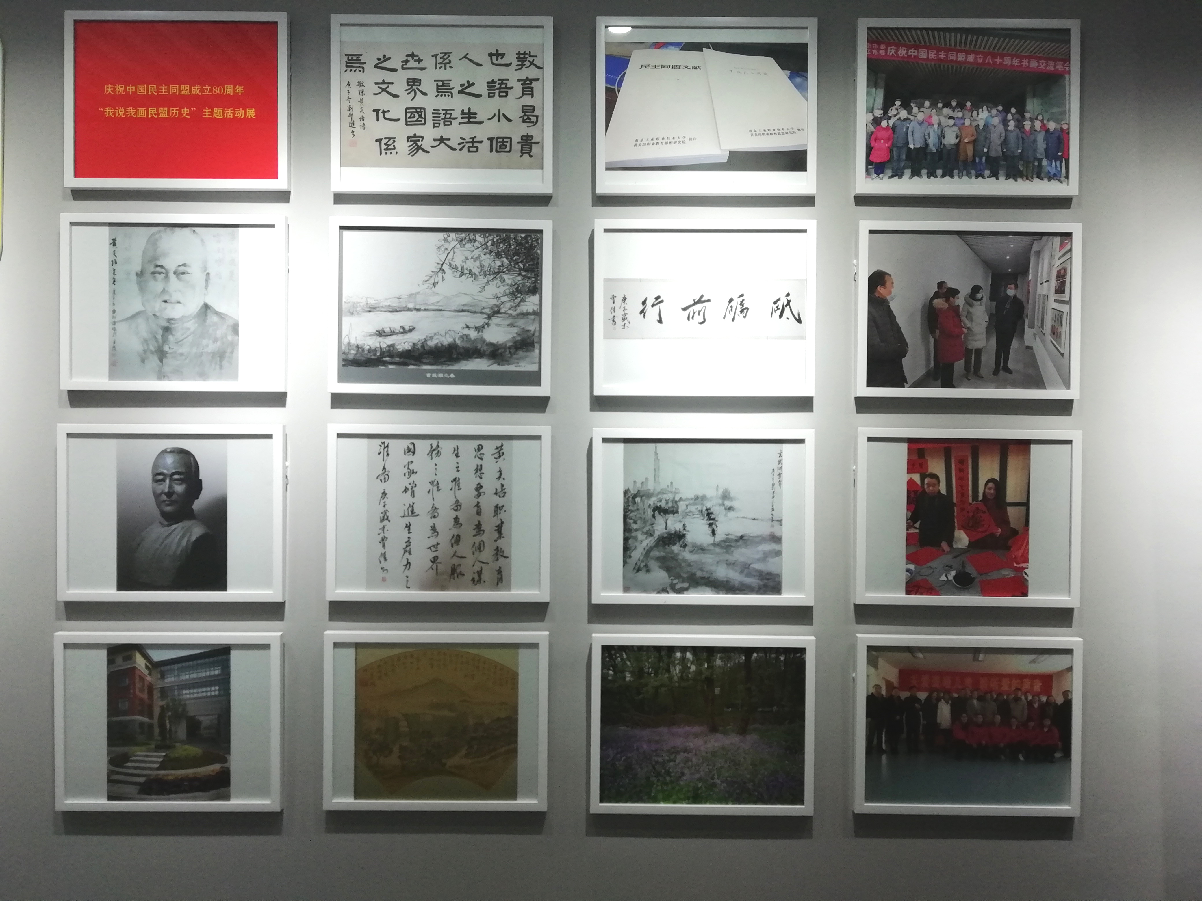 2021年4月,南京民盟南工支部为庆祝建党100周年及中国民主同盟成立80周年组织了“我说我画”主题活动展。主题活动主要是以支部盟员们创作的中国画、油画、书法、雕塑、摄影等多元化的艺术题材来庆贺建党100周年及中国民主同盟成立80周年。这些生动的艺术作品被镶嵌在镜框悬挂在南工支部活动中心的形象墙上,成为一道亮丽的风景线,它是支部所有盟员们平时开展各项活动进行展示的一个流动窗口,也是对外宣传南工支部的一个窗口。 此次“我说我画”主题活动展的作品表现形式丰富多元,有用国画形式表现的民盟创始人黄炎培先生的肖像画及民盟诞生地玄武湖湖畔的怡人景色;也有用不同书法形式表现的黄炎培语录;有的盟员根据自己的研究特长结合南工黄炎培职业教育思想研究院的文献材料编制《民主同盟文献》;有的盟员用摄影的形式表现美丽的风景。画面、书法、摄影、著作等各种形式相得益彰,从多维度、多侧面凸显了中国民主同盟的先驱人物以及民盟的伟大历史。此次活动进一步加深了民盟成员们对民盟历史及民盟光荣传统的了解,大家一致表示要继承和发扬民盟的优良传统、立足岗位,做好本职工作,为学校的发展、支部的建设和尽早实现伟大中国梦而努力奋斗!