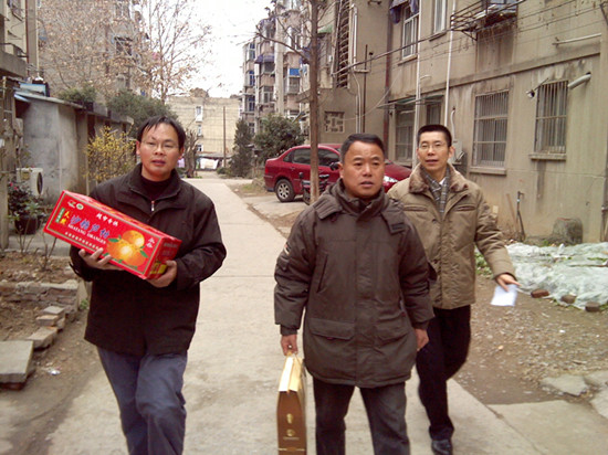 总支委员们冒着严寒走访了玻璃纤维研究设计院小区、亚东国际公寓、共青团路、水西门大街等八位老同志的居住地,了解他们的身体状况和生活状况,提前向他们送去新春的祝福、节日的慰问以及全体盟员对他们的关心和问候,并感谢他们多年来对组织工作的支持,对南京市民生社情、城市建设的关心。 在亚东国际公寓,委员们看望了玻纤院老干部毛钧正同志,感谢他一直以来对区盟务工作的建言献策,希望他在今后能够继续发挥余热,多为总支出谋划策。毛老表示,一定会大力支持总支工作。在二支部王昭全老人家里,王老向总支提交了三份提案,涉及到南京城市建设中的几个需要重点解决的问题,让我们感受到他关注社会、热爱家乡的主人翁精神。当委员们来到水西门大街,将慰问品、慰问金送到家庭困难的汪元同志手中时,汪老紧紧握住赵文标主委的手,感谢组织带给他的温暖。