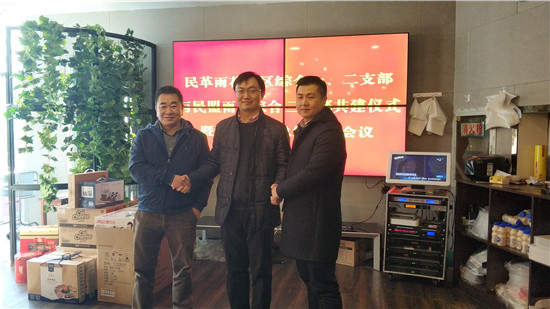 2019年1月18日下午,雨花大道8号雨花体育中心一楼咖啡馆内笑声阵阵,气氛热烈而融洽。在这里,雨花台区六十多名民主党派人士欢聚一堂。在热烈的掌声中,民盟雨花综合二支部与民革雨花台区综合一、二支部举行党派联谊共建仪式。民盟雨花总支主委石明舟代表雨花总支参加了本次联谊共建。据悉,这次活动是雨花台区党派之间首次共建。  民盟雨花综合二支部主委郑军代表二支部致辞,他表示雨花综合二支部在民盟南京市委的领导下,在民盟雨花总支的支持下,开展与兄弟党派之间的联谊共建,将会较好的服务支部盟员和展开支部活动。双方支部主委在支部范围内围绕雨花民主党派组织工作交流了想法。  郑军主委代表民盟雨花综合二支部接受了区电视台的专访。参加本次活动的还有雨花盟员缪成薇、王红波、杨松等十二名盟员参加本次活动。